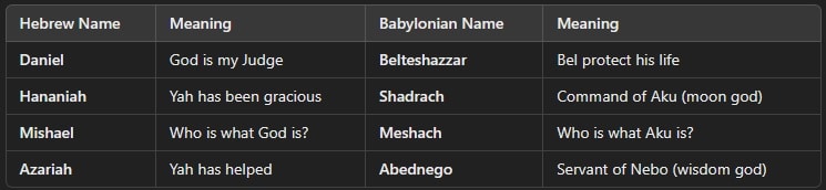 📖 Daniel 1:6–7 – “Unto whom the prince of the eunuchs gave names…”