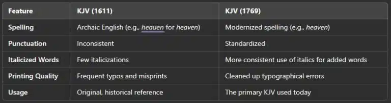 The 1769 revision did not alter the text’s meaning but refined it for clarity and consistency. It remained faithful to the Textus Receptus and the Masoretic Text, ensuring that core doctrines, including: