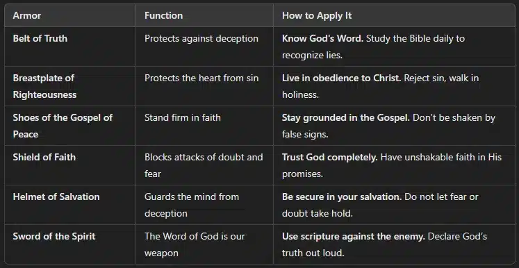 📖 Ephesians 6:12-17 – “For we wrestle not against flesh and blood, but against principalities, against powers, against the rulers of the darkness of this world, against spiritual wickedness in high places. Wherefore take unto you the whole armour of God…”